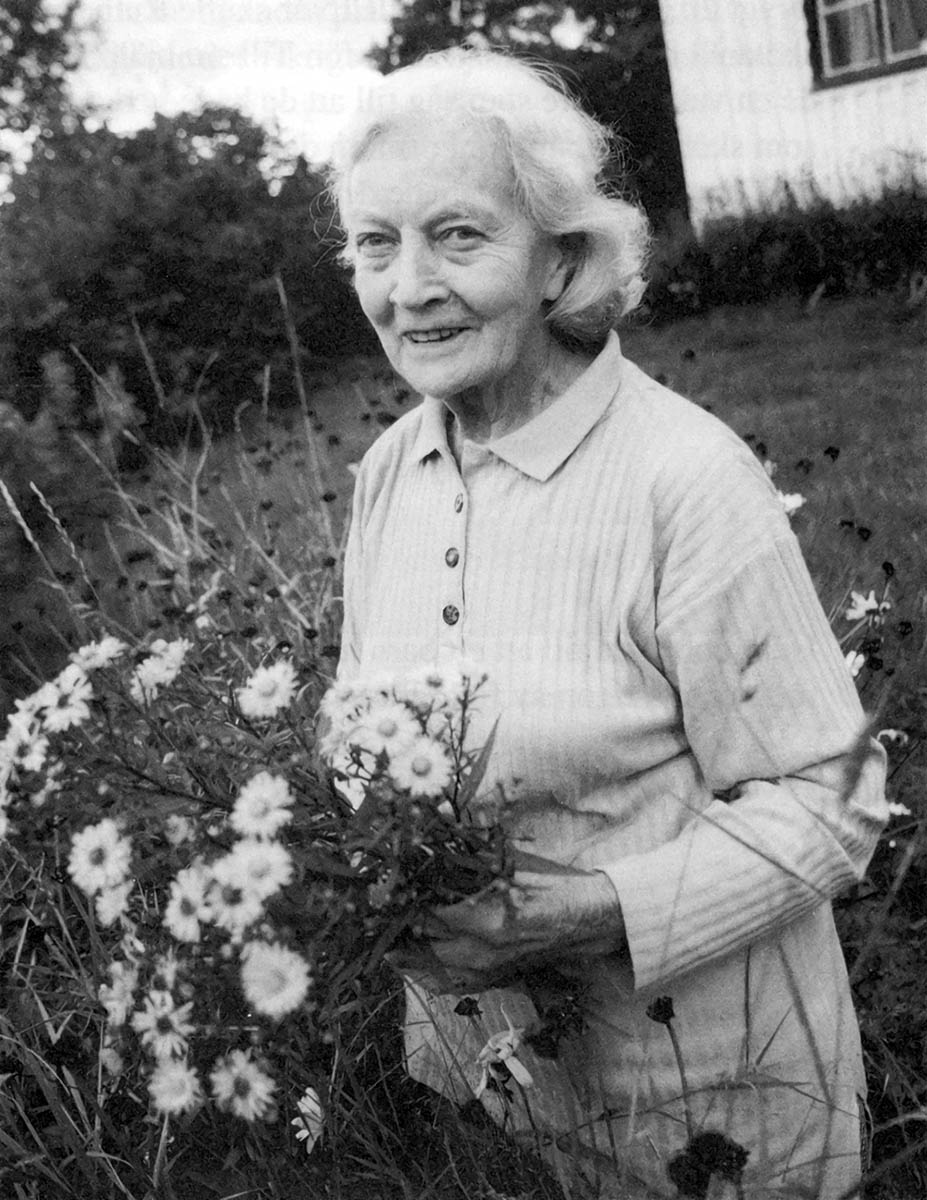 Ruth i sin trädgård sensommaren 2000. Från "Boken om Simmersröd".