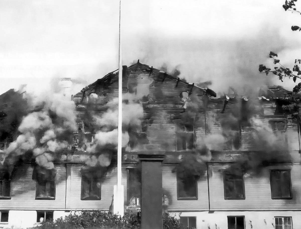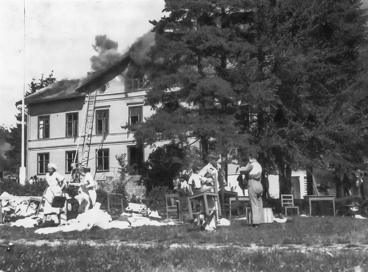 Branden 1933 började mitt på dagen, så mycket av inventarierna kunde räddas. Ljungskilefotografen K.G. Henriksson var snabbt på plats och dokumenterade hela händelseförloppet.